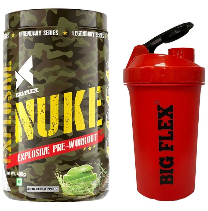 Big Flex Nuke Explosive Pre-Workout with 700ml Shaker Free Green Apple Assault