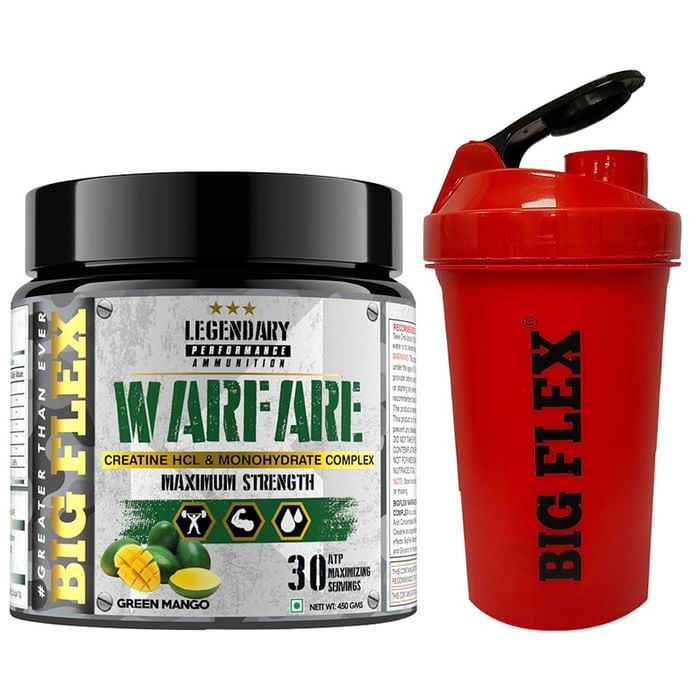 Big Flex Warfare Creatine HCL and Monohydrate Complex with 700ml Shaker Free Green Mango
