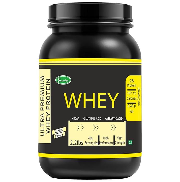 Bioven Ultra Premium Whey Protein 70% Powder Vanilla can be used as protein supplement. When taken alongside resistance training, this might promote growth of lean muscle mass. Whey is the liquid that remains after curdling and straining milk. It is a byproduct of the cheese manufacturing process and has various commercial purposes. Whey protein contains all 9 essential amino acids. When taken alongside resistance training, this might promote growth of lean muscle mass. This protein powder can be conveniently used before training, post workout or in between meals and can be used to add protein into your diet. This might help in the maintenance and building of muscle mass. This protein powder good might aid in weight loss and might lead to fat loss. | Key ingredients: 80% whey protein Maltodextrin Sugar Preservatives Permitt ed synthetic vanilla flavour Contain added identical and artificial flavour substance (Vamilla) | Key Benefits: Whey is an Excellent Source of High-Quality Protein Whey Protein Promotes Muscle Growth Whey Protein May Help Reduce Inflammation Helps meet the daily Protein requirement of the body This might help limit muscle loss during low calorie diets | Directions for use: Add 1 heaping scoop 40 GM to 340 chilled water or skimmed milk or other liquid. Blend 40 seconds for thick and creamy shake Take 1-2 serving or as recommended by the health care profession | Safety Information: Store in a cool and dry place Do not use this without the expertise of a healthcare professional If any severe effects such as are observed, please stop using immediately No definitive claims can be made regarding its effectiveness Pregnant or breastfeeding women must avoid consuming this tablet or consult a healthcare provider before consuming Keep away from children Do not overdose Avoid in case of allergy