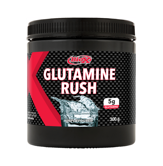 BioX Glutamine Rush Unflavoured Powder BioX Glutamine Rush Unflavoured Powder contains glutamine which is an important amino acid with many functions in the body. It is a building block of protein and acts as a critical part of the immune system. L-Glutamine helps to reduce recovery time after a work out session.