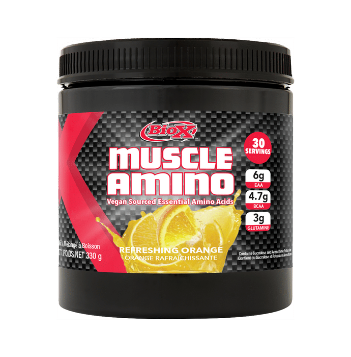 BioX Refreshing Orange Muscle Amino Vegan Sourced Essential Amino Acids Powder BioX Muscle Amino Vegan Sourced Essential Amino Acids Powder is formulated to facilitate protein synthesis to trigger muscle growth. The powder promotes lean muscle mass during the rest period.
