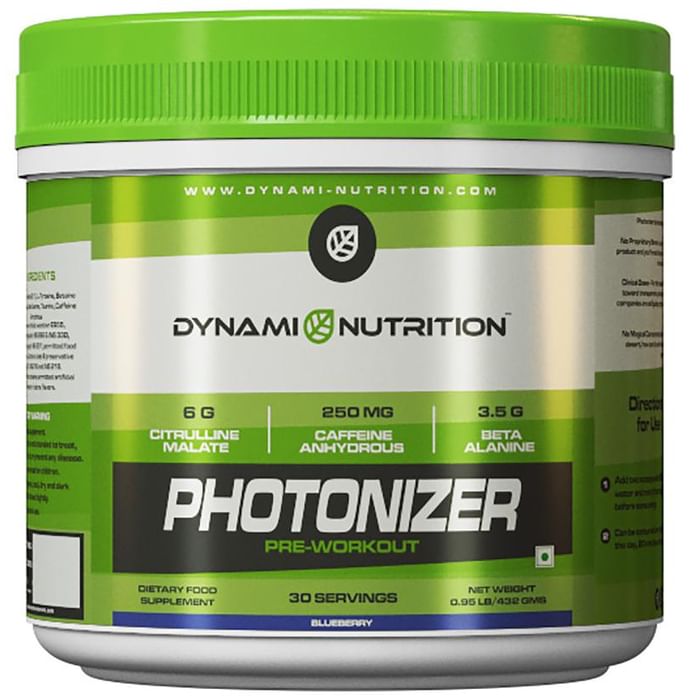 Dynami Nutrition Photonizer Pre-Workout Powder Blueberry Dynami Nutrition Photonizer Pre-Workout Powder is an instant energy booster that aims at pumping your body during workout sessions and provides enough stamina to lift weights and experience gains.