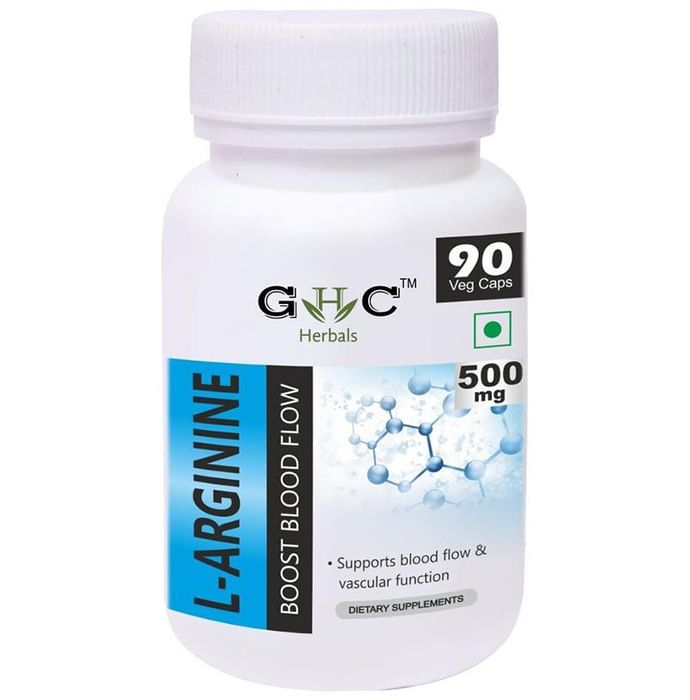 GHC Herbals L-Arginine 500mg Veg Caps is a conditionally essential basic amino acid involved primarily in urea metabolism and excretion, as well as in DNA synthesis and protein production. It is an important source of nitric oxide and thus plays a role in the dilation of blood vessels. It enhances healthy blood circulation and supports immune function. In addition to maintaining good blood flow, it is also well known for energy production which is perfect for people striving to live an active and healthy lifestyle. They do not contain sugar, gluten and dairy products. They are without hormones, antibiotics, preservatives, soy, yeast, sugar, artificial flavours or any harmful chemicals which affects your body. | Key Ingredients: L-Arginine | Key Benefits: Beneficial for muscle protein synthesis Supports athletic patients and also support to increase the production of nitric oxide Helps supply energy to all of the cells of the body Supports cardiovascular health and a healthy immune system | Directions For Use: Take 2 capsules daily with a meal or as recommended by healthcare professional. | Safety Information: Read the label carefully before use Store in a cool dry place away from direct sunlight Keep out of reach of the children
