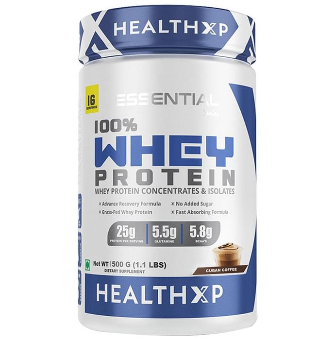 HealthXP 100% Whey Protein Cuban Coffee HealthXP 100% Whey Protein is a health supplement that comes with rich quality ultra-filtered whey protein concentrate which helps in building muscles and recovering fast after hard workouts. It delivers 25 grams (per serving) of fast-digesting Whey with insignificant ratios of fat lactose and cholesterol.