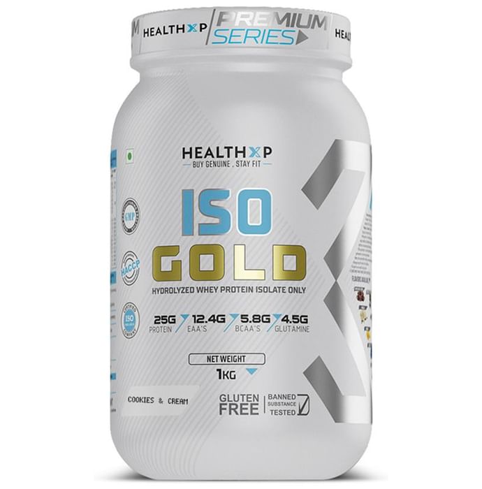 HealthXP Iso Gold Whey Protein Isolate Cookies & Cream HealthXP Iso Gold Whey Protein Isolate is formulated to support muscle protein synthesis. The product helps to fortify the immune system and stimulates muscle growth. In addition to this, it is beneficial for athletes who are on a low calorie diet. In addition to this, it comes in six different flavours namely, Cookies and Cream, Cafe Brazil, Chocolate Fudge, Mango, Vanilla, and Butter Almond.