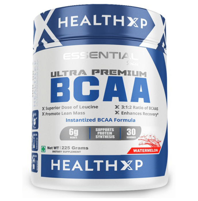 HealthXP Ultra Premium BCAA 3:1:2 replenishes amino acids in your muscles post workout. It is used prior to or during heavy workouts ensuring improved performance with ease to get the most out of them. Key Ingredients: L-Leucine L-Glutamine L-Isoleucine L-Valine | Key Benefits: Promotes quick absorption in the bloodstream Helps replenish the amino acids in the muscles post workout Helps preserve glycogen stores in the body Useful before or during heavy workouts for better and easy performance | Directions For Use: Use as directed on the label. | Safety Information: Store in a cool and dry place Read the manual carefully Keep out of the reach of children