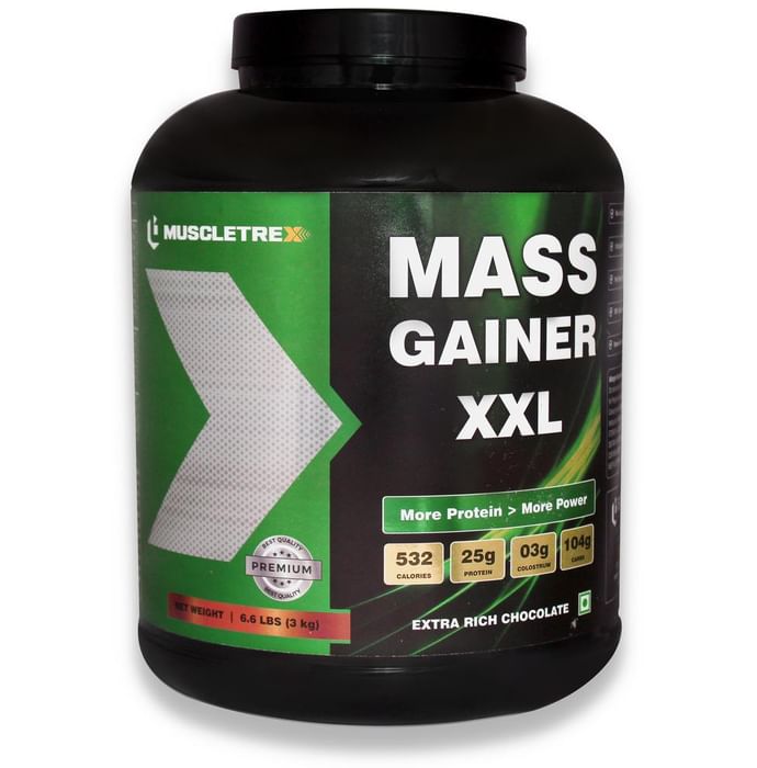 Muscletrex Mass Gainer XXL Extra Rich Chocolate Muscletech Mass Gainer XXL is generally used to gain weight and is useful for people who have difficulties gaining weight. It is high in carbohydrates, vitamins and minerals and it is enriched with the goodness of colostrum. Colostrum is a highly nutritious pre-milk fluid produced from the mother’s mammary glands during the first 24-48 hours after birth. It offers several benefits when consumed on a daily basis.