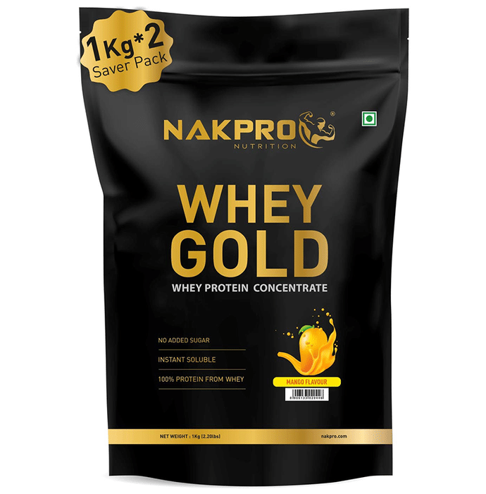 Nakpro Nutrition Whey Gold Whey Active Concentrate Powder (1kg Each) Mango Nakpro Nutrition Whey Gold Whey Active Concentrate Powder Protein makes an essential component of your diet. It supports lean muscle gain along with muscle recovery. Whey protein concentrate powder contains protein in each serving which triggers the synthesis of new muscle tissues and boosts muscle recovery. You can consume it in a variety of ways like protein shakes, smoothies, protein bars, etc.