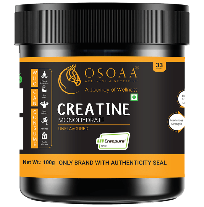 OSOAA Creatine Monohydrate Powder Unflavored OSOAA Micronized Creatine Monohydrate Unflavored Creatine Monohydrate is used in sports nutrition as creatine is stored in the muscles and is needed the most when repeated bursts of power are required during heavy activities. Creatine is needed to perform at the highest level. This health supplement can help increase strength, boost energy levels, support muscle growth and mass, and improve stamina.