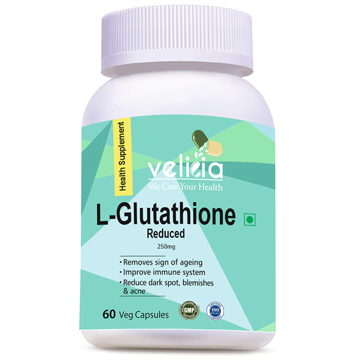 Velicia L-Glutathione Reduced 250mg Veg Capsule Velicia L-Glutathione Reduced 250mg Veg Capsule has an effective Glutathione formula providing a host of health benefits