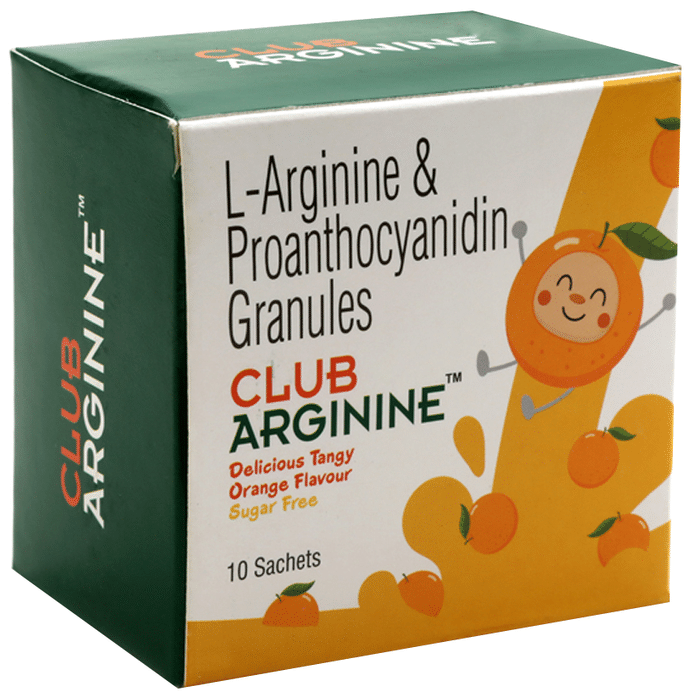 Zuiver Club Arginine Sachet (5gm Each) Delicious Tangy Orange Sugar Free is a supplement that can support general health and well-being. It may support heart health and function. Moreover, it can help regulate cholesterol and blood pressure levels. | Key Ingredients: L-Arginine Proanthocyanidin | Key Benefits: This sachet can support the heart in various cardiac issues It can help regulate blood pressure levels It can help improve blood circulation in the body This formulation can help enhance energy levels and boost overall physical performance | Directions For Use: Dissolve the whole content of the sachet in about 100ml of water and consume or as advised by your healthcare provider. | Safety Information: Read the label carefully before use Do not exceed the recommended dosage Store in a cool and dry place away from direct sunlight Keep out of reach of children