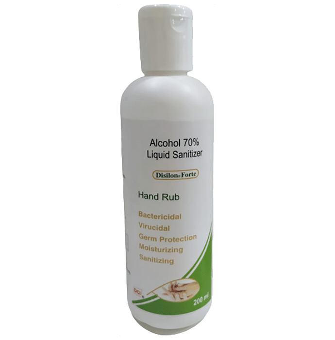 Disilon Forte Hand Rub Liquid Sanitizer helps keep skin soft even with frequent hand washing. It cleanses, deodorizes and removes all the dirt from your hands. | | Key Ingredients: Ethanol IP- 70% Diethyl phthalate | Key Benefits: It helps in protecting the hands from germs It helps maintain the natural moisture of the skin It is used to stop the infection-causing germs from spreading | Directions For Use: Apply Disilon Forte on dry hands, dispense as many pumps necessary to give good coverage Rub hands together, especially between fingers and around nails, until the product has dried. | Safety Information: Read the label carefully before use Keep out of reach of the children Store in a cool dry place