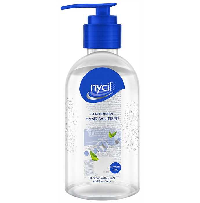 Nycil Germ Expert Hand Sanitizer is enriched with Aloe Vera & Neem helps to get rid of 99.9% of common germs. Helps to keep your hands protected and safe. | Key Ingredients: Isopropyl Alcohol Neem Aloe Vera Extract | Key Benefits: Enriched with neem and aloe vera Helps to get rid of 99.9% of common germs Contains 75% alcohol | Directions For Use: Squeeze a coin-sized amount in your palm Rub well over the palm, at the back of hand and fingers until dry Water is not required after use | Safety Information: Read the label carefully before use Store in a cool dry place away from direct sunlight Keep out of reach of the children