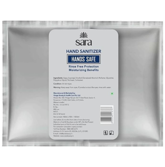 Sara Hands Safe Hand Sanitizer (100ml Each) Sara Hands Safe Hand Sanitizer is hard on germs, gentle on hands. It can be used throughout the day to protect your hands against germs, bacteria, etc. It is an effective amalgamation of herbal extracts and natural essential oils. This herbal product is helpful to eliminate the germs and give a supple skin because of its anti-bacterial and anti-oxidant properties. All of these key ingredients ensure healthy effects on the skin while removing germs from the hands. Key Ingredients: Isopropyl Alcohol Propylene Glycol Triclosan Glycerine Neem Extract Basil Extract Tea Tree Extract Aqua & Perfume