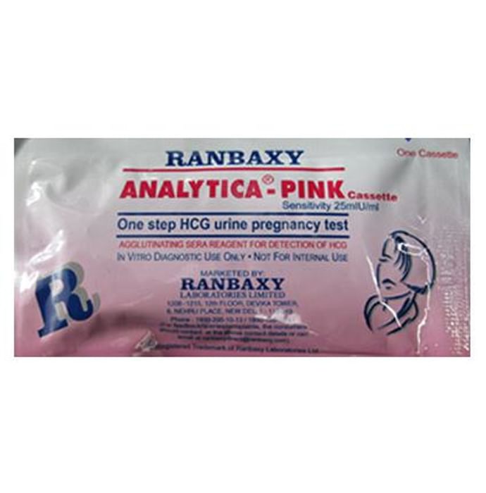 Analytica Pink Card is a pregnancy diagnosis kit works by detecting the pregnancy hormone (hCG) in a urine sample. Role of key ingredients: Human Chorionic Gonadotropin (HCG) is a glycoprotein hormone produced during pregnancy appears in the urine of a women approximately 20 days after her last menstrual period. Human Chorionic Gonadotropin is very important for establishing and maintaining early pregnancy. It is produced by the cells that surround the growing human embryo. It informs the corpus luteum to maintain the production of progesterone. Analytica Pink Card is used in diagnosis of pregnancy. Direction of use: Collect the urine sample on to the Analytica Pink Card with the help of a dropper and wait for the results. Use under medical supervision.