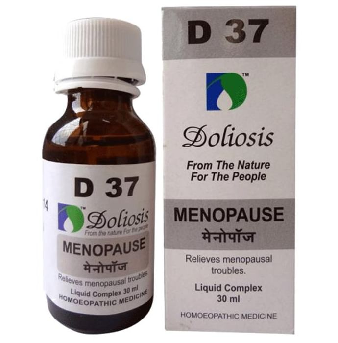 Doliosis D37 Menopause Drop Doliosis D37 Menopause homeopathic liquid complex drops is useful for relief of hot flushes, night sweats, nervousness, depression and anxiety associated with the cessation of the menstrual cycle. | Key Ingredients: Cimicifuga Racemosa 8x 0.02% Glonoinum 10x 0.02% Graphites 8x 0.02% Lachesis 12x 0.02% Pulsatilla Nigricans 10x 0.02% Alcohol 30% v/v | Key Benefits: It helps in reducing stress It helps treat hot flushes and night sweats It is useful in helping treat depression, anxiety and nervousness | Direction of use: As directed by physician | Safety Information: Keep out of reach of children Store in cool dry place Read the manual carefully