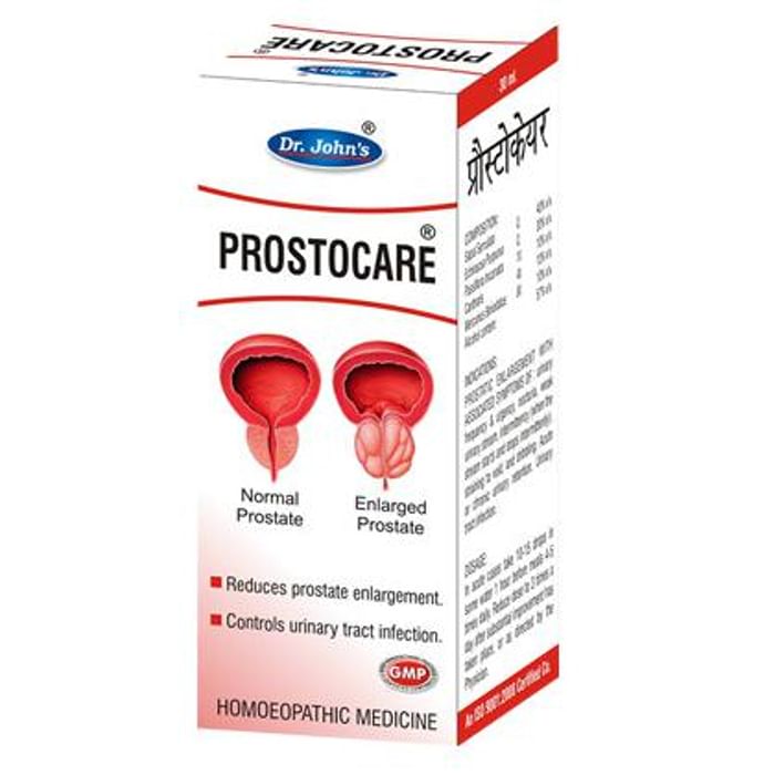 Dr. Johns Prostocare Drop Dr. Johns Prostocare Drop is indicated for prostatic enlargement with associated symptoms of urinary frequency and urgency, nocturia, weak urinary stream, intermittency, straining to void and dribbling. It is very effective in management of urinary tract infection.