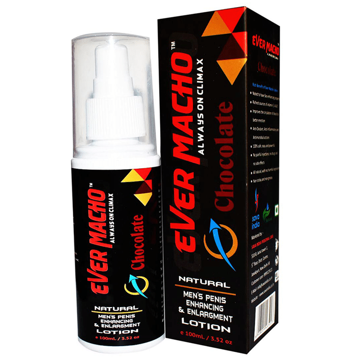 Ever Macho Chocolate Lotion is an organic lotion that helps maintain men's reproductive health. It helps enhance libido and boosts your energy levels. | Key Ingredients: Karpasa Mukulika Taja Ashwagandha | Key Benefits: It boosts your energy levels It helps maintain men's reproductive health This lotion helps enhance libido It helps prevent possible infections | Directions for Use: Use as directed on the label. | Safety Information Not meant for internal consumption Do a patch test before applying Keep out of reach of children Store in a cool, dry place