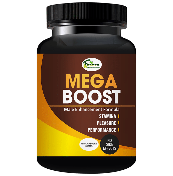 Fasczo Mega Boost Male Enhancement Formula Capsule is a potent libido booster that may help men improve their sexual drive while also enhancing their libido. It's a powerful energizer and natural immune booster. It may also aid in the maintenance of testosterone levels in the body. These capsules improve blood flow to the male genital regions, resulting in erections that are thicker, fuller and bigger. | Key Ingredients: Shilajit Kali musli Ashwagandha Konch beej Loh bhasma Satavari | Key Benefits: It helps in improving energy levels in the body It may assist in maintaining levels of testosterone in the body The capsule aims to provide a positive effect on the overall health and well-being | Directions For Use: Read the label carefully before use | Safety Information: Do not exceed the recommended dosage Store in a cool and dry place away from direct sunlight Keep out of reach of children