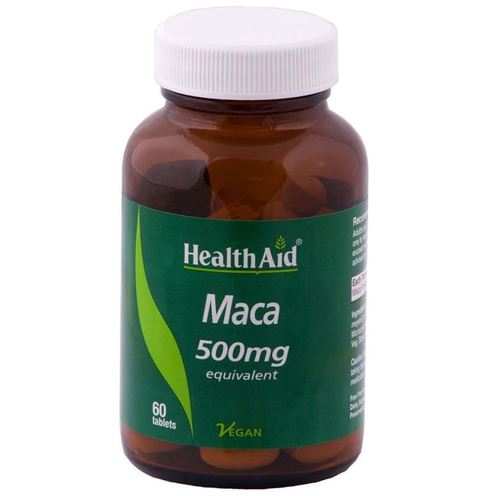 Healthaid Maca 500mg Tablet Healthaid Maca Tablets are formulated using the best quality extracts and powders, derived from wild crafted or organically grown herbs meticulously processed to maintain purity and high potency. Health Aid Maca 500 Mg Tablet is a herbal supplement for adults. Intake of this supplement can benefit people of both the sexes to overcome sexual difficulties. This supplement enhances libido by developing your overall sex drive and desire for sexual activity. It may help in the treatment of male infertility. This supplement energises body and stimulates physical vitality. It may also enhance mental energy and develop mental power and abilities. This supplement also benefits women with symptoms of menopause. Key Benefits: Benefits people with sexual difficulties Enhances libido Alleviates stress and stimulates your physical vitality Enhances sexual drivez Direction of use: Adults and children over 12 years of age, one or two tablets three times a day. Do not exceed recommended daily intake, unless or as advised by a suitably qualified person. Use under medical supervision