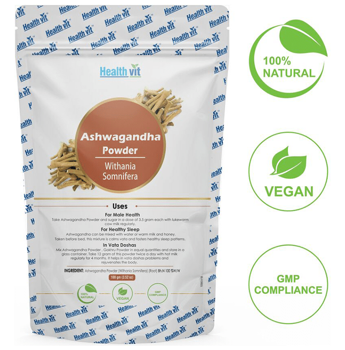 HealthVit Natural Ashwagandha Powder HealthVit Natural Ashwagandha Powder is used extensively in Ayurveda, categorized as a rasayana, which is used to promote physical and mental health, to provide defense against disease and adverse environmental factors and to slow the ageing process.