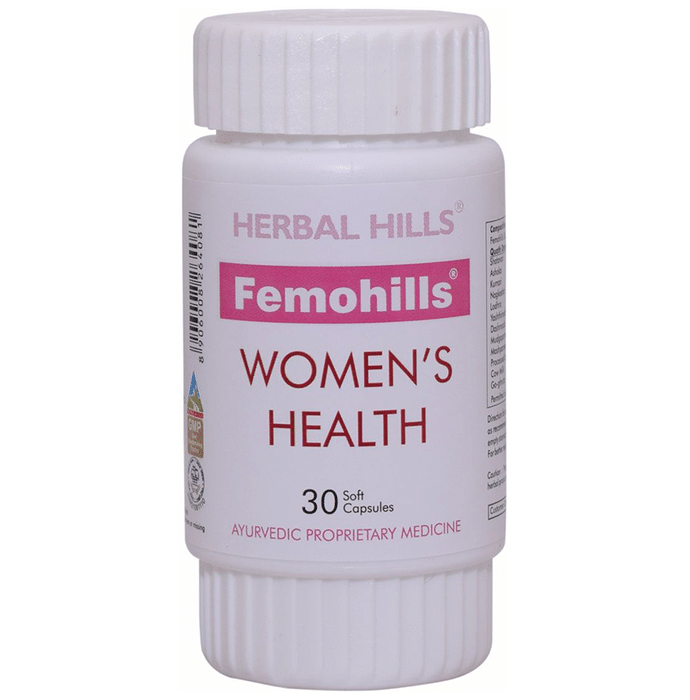 Herbal Hills Femohills Women's Health Softgel Capsules Herbal Hills Femohills Capsule contains Shatavari, Ashoka, Lodhra, Kumari, Dashamool, Yashtimadhu, Dashmoola, Mudgaparnee, Mashparnee, and Cow Ghee as active ingredients. Key benefits/uses of Herbal Hills Femohills Capsule: - Helps to regulate the proper menstrual cycle and maintains menstrual flow - Provides the healthy hormonal balance in the body - Helps to nourish and strengthen the female reproductive organs - Useful in reducing the inflammation of the uterus & helps in controlling the symptoms like leucorrhoea and menorrhagia - Acts as good anti-inflammatory and analgesic Directions for use/Dosage: - Take 2 Soft gel capsules once a day in the morning or as directed by the physician Indication: - Uterine health, analgesic, anti-inflammatory & rejuvenating properties Recommendation: - For women only Safety information: - Read the label carefully before use - Do not exceed the recommended dose - Keep out of the reach and sight of children