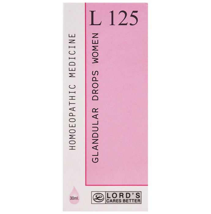Lord's L 125 Glandular Women Drop Lords L 125 Glandular Women Drop is a homeopathic formulation that helps to balance endocrine secretions which can be disturbed by stress, infection and other factors. It is used in the treatment of disorders like growth disturbances, obesity, thyroid dysfunction, may assist in the treatment of addison's disease and impotency (sexual dysfunction) in men.