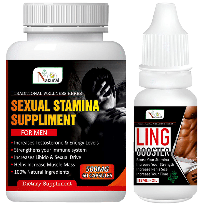 Natural Combo Pack of Sexual Stamina Suppliment 500mg, 60 Capsule & Ling Booster Oil 15ml