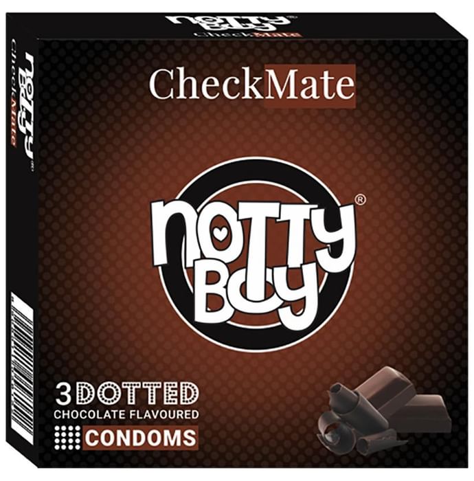 Notty Boy Check Mate Condom Chocolate NottyBoy JuicyLucy Flavoured Dotted Condoms made from natural rubber latex helps in enhancing the pleasure levels to the max by providing unique dotted design, reservoir tip and rich strawberry flavour. They are lubricated for a comfortable natural feeling. Reservoir tip provides added comfort and safety.