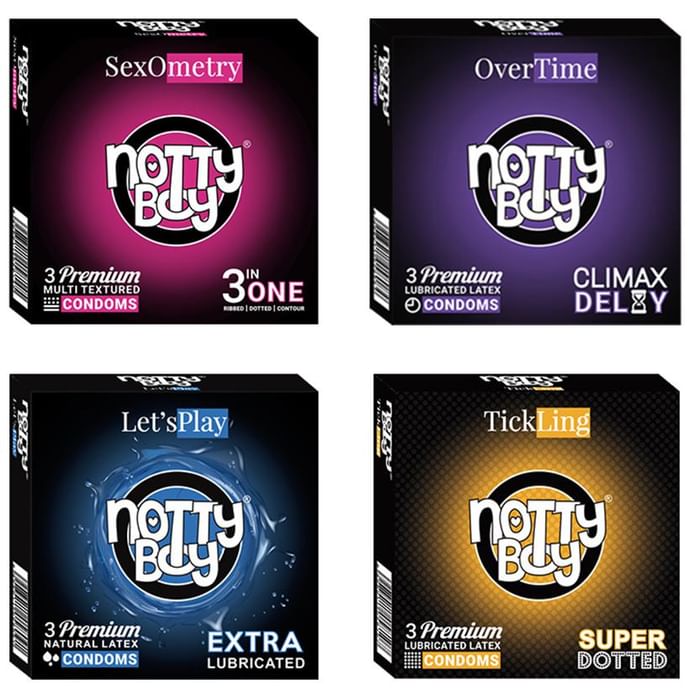 Notty Boy Condom (3 Each) Assorted NottyBoy Condoms apart from providing extra stimulation are also equipped with reservoir tips to make the intercourse extra safe. These kinds of tips help in preventing any leakage during those intensely passionate moments. Furthermore, these condoms are already lubricated to offer smooth penetration.