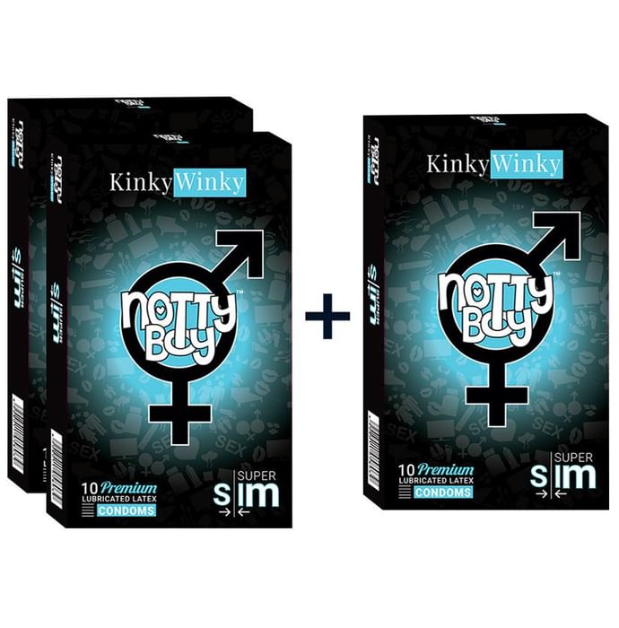 Notty Boy Super Slim Kinky Winky Condom Buy 2 Get 1 Free (10 Each) Notty Boy Condom made from natural rubber latex gives you the most intense sensations and natural feeling to you and your partner. NottyBoy SuperSlim condoms help in enhancing the pleasure levels to the max by providing an extra-thin wall.