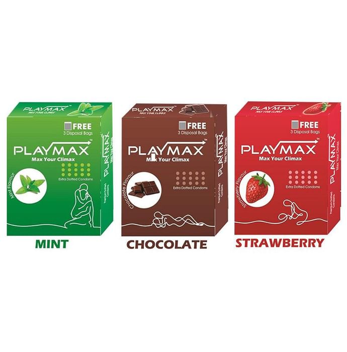 Playmax Extra Dotted Condom Mint Chocolate Strawberry Playmax Extra Dotted Condom is a lubricated condom with ends made from premium rubber latex. The specially designed raised dots are placed strategically to give the extra added pleasure.