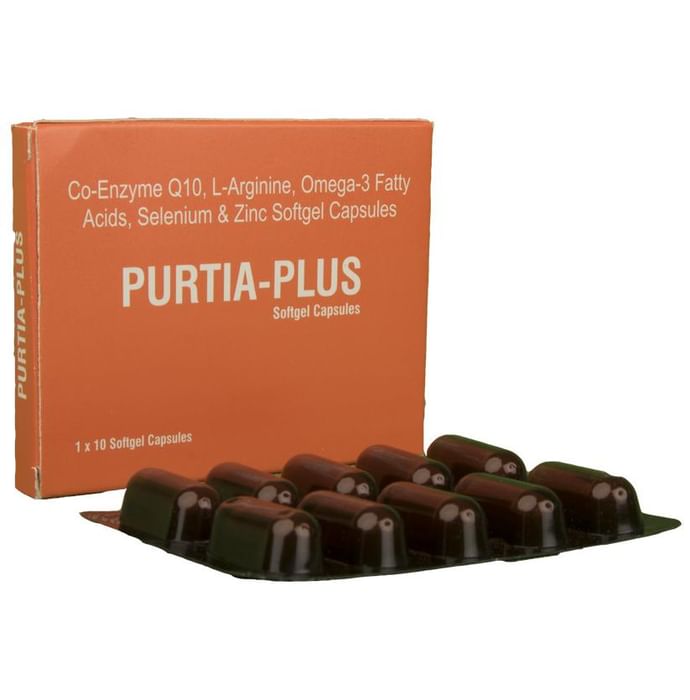 Purtia -Plus Soft Gelatin Capsule Purtia -Plus Soft Gelatin Capsule is formulated with co-enzyme Q10, l-arginine, selenium, zinc, and omega-3 fatty acids. Co-enzyme Q10 helps to increase energy by producing ATP, a molecule in body cells that supports energy transfer.