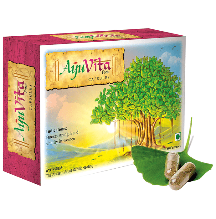 AyuVita Forte: Boosts Strength and Vitality in Women is a herbal tonic for women that can rejuvenate the reproductive system, enhance inner beauty and improve vitality. It can regulate mensuration. It is an energising and rejuvenating tonic that can enhance immunity. | Key Ingredients: Mucuna prurita extract Saraca indica extract Symplocos paniculata extract Glycyrrhiza glabra Sida cordifolia seeds extract Withania somnifera extract Asparagus racemosus extract Asparagus adscendens Emblica officinalis Tinospora cordifolia Godanti bhasma Mandur bhasma Pueraria tuberosa extract Leptadenia raticulata extract Convolvulus pluricaulis extract Mesua ferrea Commiphora myrrha | Key Benefits: This ayurvedic formulation can delay the ageing process due to its anti-oxidant properties It may help in reducing general weakness and uplifting the energy and strength It can improve resistance to infection i.e. immunity of the body This product may help in dealing with menstrual disorders, menorrhagia and leucorrhoea It can promote fertility and strengthen the reproductive system | Directions For Use: Take 2 capsules 2 times daily | Safety Information: Keep out of reach of children Store in a cool dry place below 25 degrees celcius Ayurvedic proprietary medicine