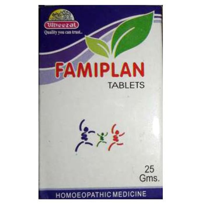 Wheezal Famiplan Tablet Wheezal Famiplan Tablet is used primarily to regulate menstrual cycle, control delayed or scanty menses and its associated symptoms. Its homeopathic composition works effectively by relieving pain during menses and corrects all menstrual problems and its abnormalities.
