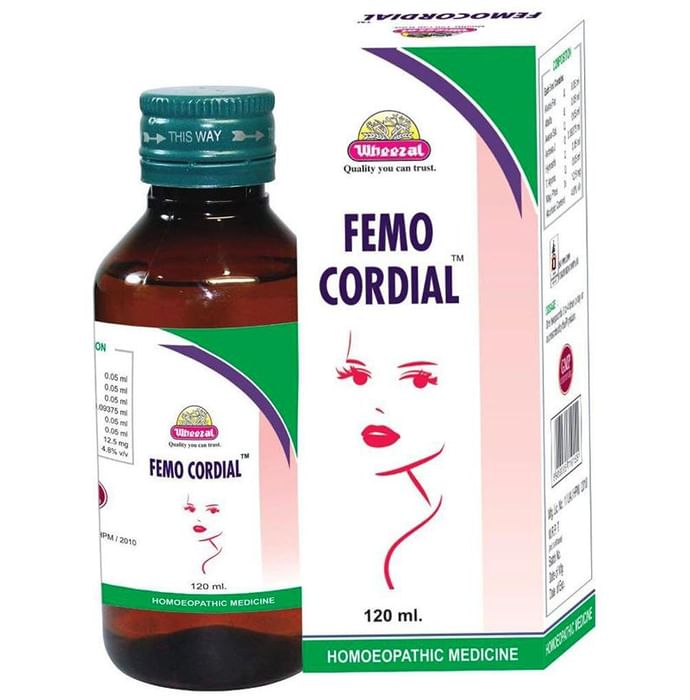 Wheezal Femocordial Syrup FEMOCORDIAL RANGE OF ACTION: Regularizes irregular menses & relieves menstrual headache & vertigo. Checks leucorrhoea, premenstrual & profuse bleeding. Helps in checking short term pregnancy, sterility and difficulty in conception. COMPOSITION: Alfalfa Q, Avena Sativa Q, Hydrastis Q, Aletris F. Q, Ashoka Q, Arjuna Q, Magphos 3X Dosage: One teaspoonful 3 times a day or as prescribed by the physician. Use under medical supervision.