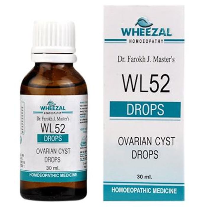 Wheezal WL52 Ovarian Cyst Drop Wheezal WL52 Ovarian Cyst Drop is a homeopathic treatment for regulation of estrogen and to reduce the symptoms of Ovarian complaints. It works by reducing pressure on the surrounding organs of the Ovary and by regulating Estrogen. Ovarian cyst consists of the fluid around Ovary and common symptoms include nausea, vomiting blood, painful bowel movement, paid during intercourse, tenderness of the breasts and low backache.