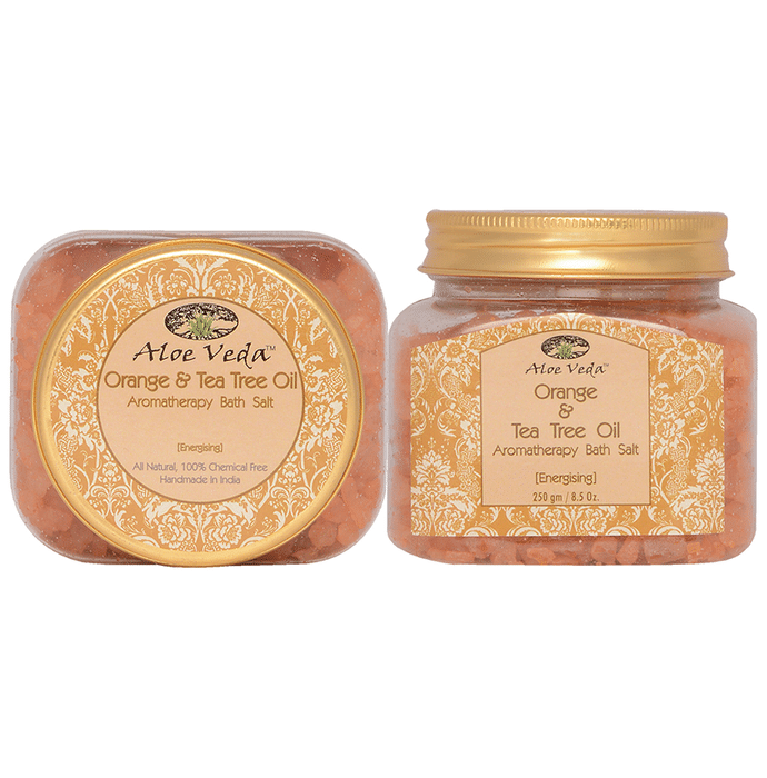 Aloe Veda Orange and Tea Tree Oil Aromatherapy Bath Salt Aloe Veda Aromatherapy Bath Salt Peppermint contains pure Himalayan salt, which possesses multiple beneficial minerals, and is blended with essential oils, known to detoxify the body and serves as aromatherapy.