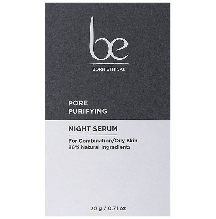 Born Ethical Pore Purifying Night Serum Born Ethical Pore Purifying Night Serum is the secret to waking up to smooth, matte skin. If night creams feel too heavy (cue more breakouts), this lightweight overnight serum for oily and acne-prone skin controls excess oil production and moisturizes to keep oily, acne-prone skin in balance. It’s infused with 86% natural ingredients like mangosteen peel, magnolia bark and pomegranate extracts. This clarifying serum targets the build-up of oil and dead skin cells to zap zits through the night so your mornings are clear and blemish-free! BE's Brand Promise: All BE- Born Ethical products are 100% vegan and cruelty-free. They are also free from toxins such as sulphates, parabens, petrolatum, formaldehyde and artificial colour.