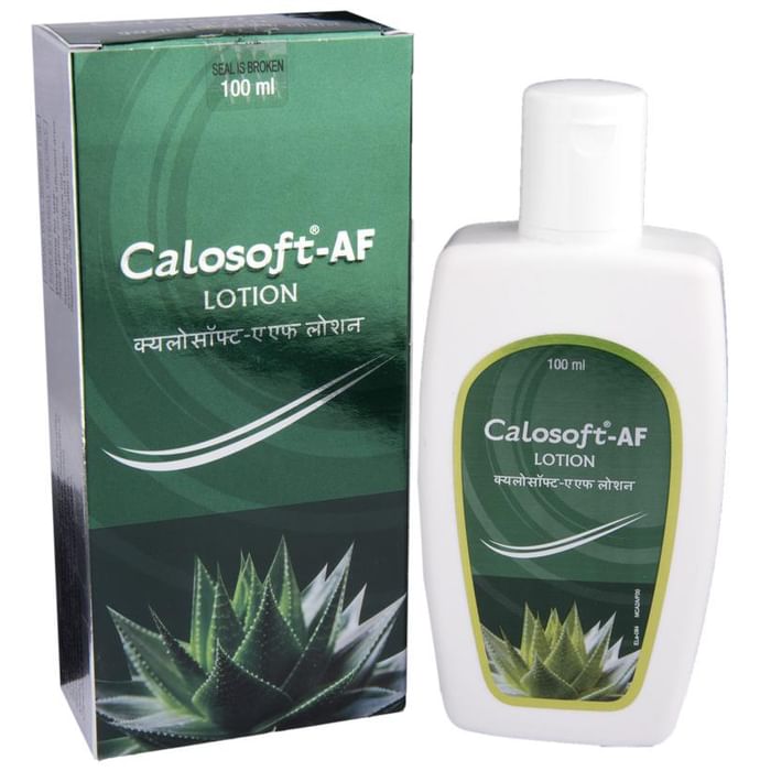 Calosoft-AF Lotion Calosoft AF Lotion is emollient is made from a mixture of Calamine, Aloe vera and liquid paraffin with water, to produce a thick moisturiser. It is a moisturizer that softens skin and protects skin. Calosoft AF Lotion is an Antiseptic and Antipruritic. Role of key ingredients: Calamine soothes and protects irritated skin. Aloe vera is very potent herb known for its skin soothing, anti inflammatory as well as antibacterial activity. It heals skin condition, moisturizes and improves the elasticity of the skin. Aloe Vera hydrates the dry skin area without leaving it oily or shiny. Light liquid paraffin is used as an emollient to prevent dryness of the skin. Useful in the treatment of: Itching and Pruritus Insect bites Skin allergy, Eczema and rashes Chicken pox sunburn Calosoft AF Lotion is used as a moisturizing agent for moisturising, soothing and protecting dry, damaged, inflamed or chapped skin. Directions for use: 1. Dab a little Calosoft AF Lotion onto the palm of your hand. 2. Apply on affected area, massaging in a slow, circular motion for maximum penetration. 3. It should be applied frequently to prevent the skin drying out. Dosage: As directed by the Dermatologist. Storage: Store In A Cool, Dry Place Away From Sunlight. Use under Medical supervision.