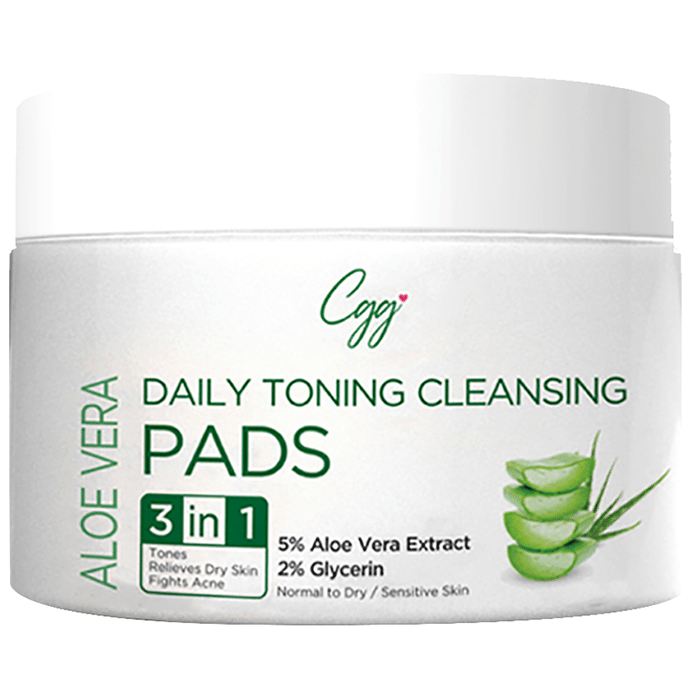 Cgg Aloe Vera Daily Toning Cleansing Pads contains aloe vera, an anti-inflammatory and moisturizing ingredient that eases rashes, itching and swelling. Hyaluronic acid is an anti-ageing hydrator that can hold 1,000 times its weight in water to help keep the skin plump. With the goodness of aloe vera and 100% biodegradable fabric, it gently cleanses all dirt and impurities. Aloe vera daily toning cleansing pads help relieve acne infection and minimize pores. | Key Ingredients: Aloe vera | Key Benefits: Eases rashes, itching and swelling Gently cleanses all dirt and impurities Helps relieve infection and minimize pores | Directions For Use: Use as directed. | Safety Instructions: Read the label carefully before use Store in a cool dry place away from direct sunlight Keep out of reach of the children