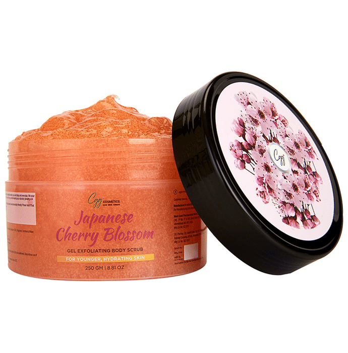 CGG Cosmetics Japanese Cherry Blossom Gel Exfoliating Body Scrub is a calming scrub with the fragrant deliciousness of Japanese cherry blossom that softly but efficiently exfoliates the skin. All-in-one gel-textured foamy scrub that polishes and cleanses the skin. With its renewing formula, it leaves the skin smooth and nourished. It has a thin texture that rubs away dry and flaky skin. Sulphates, parabens, phthalates, silicones, and animal ingredients are all absent. It is a vegan, cruelty-free and judgment-free product. | Key Ingredients: Apricot kernels Japanese cherry blossom extracts | Key Benefits: This product is high in antioxidants, which aid to remove pollutants from the skin It moisturises the skin that keeps it smooth, lustrous and keeps the skin hydrated The anti-inflammatory qualities of this lotion can help to heal and soothe the sensitive skin It can keep skin nourished and healthy This scrub is vegan, cruelty-free, paraben-free, sulphate-free, mineral oil-free and environmentally friendly, with ingredients sourced from across the world | Directions For Use: Use as directed on the label. | Safety Information: Read the label carefully before use Do not exceed the recommended dosage Store in a cool and dry place away from direct sunlight Keep out of reach of children