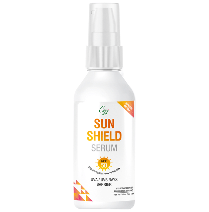 CGG Cosmetics Sun Shield Serum SPF 50 CGG Cosmetics Sun Shield Serum SPF 50 is a non-greasy, non-chalky, non-patchy and lightweight formulation suitable for long and intense sun exposures. It delivers twin benefits – very high and broad-spectrum UVA/UVB sun protection plus advanced anti-ageing serum. The serum checks photo damage, brightens, smoothens and rejuvenates the skin. Besides, it reduces visible signs of aging. The lightweight formulation offers a matte look and absorbs quickly. CGG products are cruelty-free, paraben-free, sulphate-free, dermatologist-tested, and environment-friendly and are made from globally sourced ingredients.