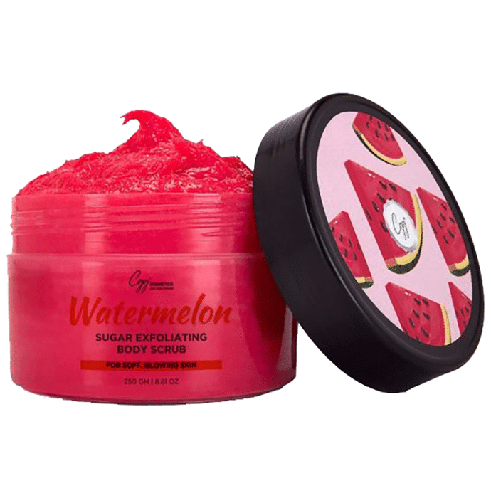 CGG Cosmetics Watermelon Sugar Exfoliating Body Scrub CGG Cosmetics Watermelon Sugar Exfoliating Body Scrub is made with natural ingredients which can remove dead skin cells, blackheads, tan, and impurities from the skin. This scrub is free from additives and is suitable for all skin types. The pure plant extracts are sourced from organic farming and are free from preservatives and chemicals. Massaging with this scrub can help increase blood circulation, remove dead skin, and reveal a healthy glow. This body scrub is made cruelty-free, paraben-free, sulphate-free, and dermatologist-tested.