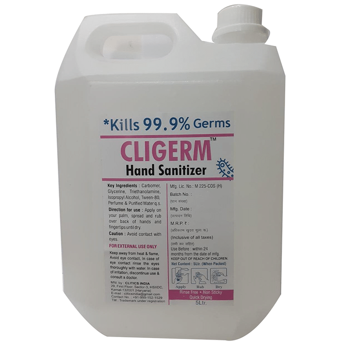 Cligerm Hand Sanitiser effectively kills 99.9% of germs and keeps your hands soft and moisturised. It provides a quick and convenient way to kill bacteria on your hands when soap and water are not available. | Key Ingredients: Carbomer Glycerine Triethanolamine Isopropyl Alcohol Perfume & Purified water q.s | Key Benefits: Quickly kills microorganisms on one's hands without irritating or drying the skin Kills 99.9% germs It keeps hands soft and moisturized Dries swiftly and ensures hygiene Kills germs without the use of soap and water | Directions For Use: Apply on your palm, spread and rub over back of hands and fingertips until dry. | Safety Information: Read the label carefully before use Store in a cool dry place away from direct sunlight Keep out of reach of the children