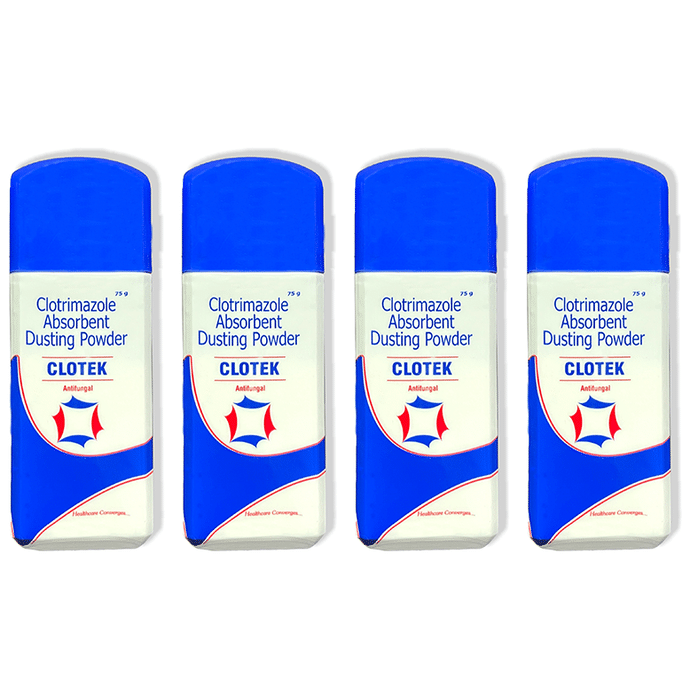 Clotek Antifungal Dusting Powder (75gm Each) Clotek Antifungal Dusting Powder provides relief from skin irritation, prickly heat, redness, itching, and fungal infection. It relieves itching in intimate body parts, underarms, inner thighs, waistline, and feet. It helps to soothe prickly heat on the back, neck, and shoulder. It helps in the prevention or treatment of fungal infections caused due to sweat and moisture by absorbing moisture at the site of infection. It discourages new fungal growth and prevents re-infection.