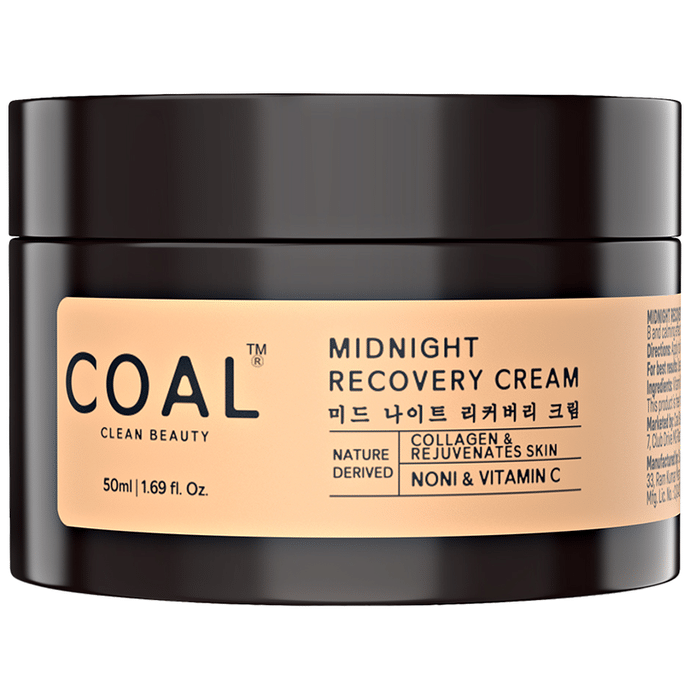 Coal Clean Beauty Midnight Recovery Cream is a night cream which can help hydrate the skin, improve skin’s elasticity, and enhance the nightly repair cycle to help rejuvenate and energize the skin. It contains Vitamin B3, which may reduce blemishes, Lily oil which can help brighten the skin tone and make the skin glow, and Vitamin B5 may help heal the skin. Glycerin can maintain moisture levels. Sodium Gluconate works as a skin conditioner. Both men and women can use this face cream. It is free from toxins, parabens, and harmful chemicals. | Key Ingredients: Lily oil Vitamin B3 Vitamin B5 Glycerin | Key Benefits: This face cream can help hydrate the skin, improve skin’s elasticity, and enhances the nightly repair cycle Lily oil may help calm, soothe, and brighten the skin tone and reduce the appearance of dark spots on the skin’s surface Vitamin B3 has antioxidant properties which can help fight free radicals and prevent water loss, and promote skin elasticity Vitamin B5 can help hydrate and heal the skin and make it soft, supple, and smooth Vitamin B5 has anti-inflammatory properties that may stimulate the skin’s healing process and absorb moisture quickly Glycerin can help alleviate skin dryness by maintaining the skin moisture level in the skin | Directions For Use: Apply the cream to a freshly cleansed face Gently massage the cream with fingertips for 2 minutes until completely absorbed Use daily before bed after applying a face serum | Safety Information: For external use only Store in a cool and dry place Keep away from children Discontinue use immediately in case of skin irritation