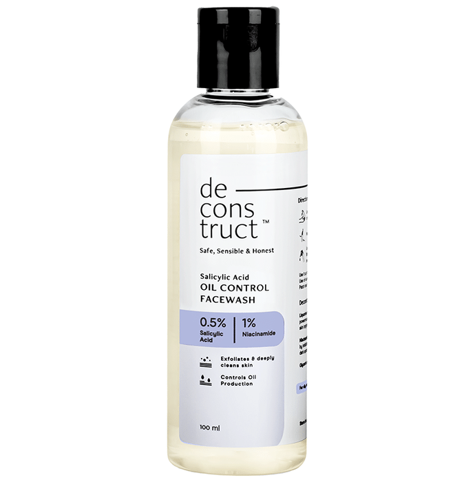 Deconstruct Salicylic Acid Oil Control Face Wash Deconstruct Salicylic Acid Oil Control Facewash Salicylic acid is an oil-soluble exfoliating acid that goes deep into the pores and helps clear acne, while niacinamide controls oil production and brightens skin. These ingredients work in collaboration to keep acne and blackheads in check. This can be easily incorporated into any routine, including sensitive acne-prone skin that cannot tolerate leave-on active products.