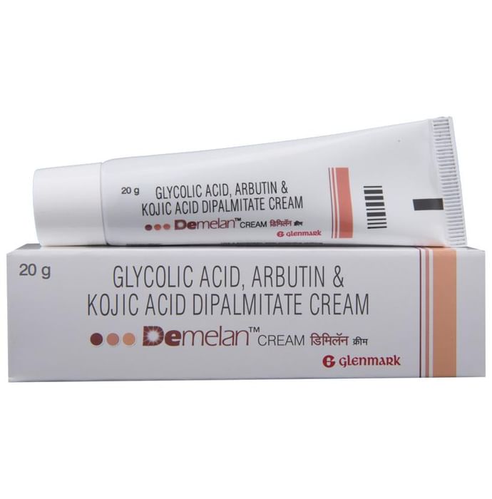 Demelan Cream Demelan Cream is an effective pigment-reducing treatment that has the clinical benefits of three active ingredients like Alpha-arbutin, Kojic acid and Glycolic acid. Alpha-arbutin and Kojic acid help reduce hyperpigmentation, while Glycolic acid renews cells.