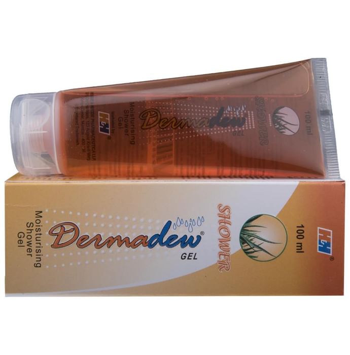 Dermadew Shower Gel Dermadew Shower Gel is a medicated shower gel having a soothing and hydrating effect on the dry and scaly skin. The major constituent of this shower gel is Aloe vera and glycerin. Aloe vera contains anti-septic and anti-bacterial properties that protect the skin from bacterial infections. It helps to treat skin diseases and combats common skin conditions like acne, wrinkles and dry skin. Aloe vera is used for dry skin, wound healing and as an anti-aging product. It also lightens and brightens the skin tone. Glycerin complex helps to protect the skin's natural barrier, moisturises and nourishes. Direction for use: Wet body under the shower Squeeze adequate quantity of Dermadew shower gel on wet palm By using other palm work into a creamy lather Apply all over the body Keep for some time Shower with warm water Dry Gently using towel Refreshing aromatic feeling with protective layer Dermadew Shower gel is recommended for all age groups as it makes the skin soft, supple, well hydrated and improves skin tone. Use under medical supervision